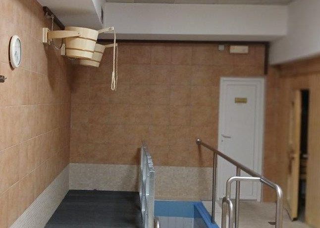 V sauně se nachází dvě potírny, každá pro 6-8 osob, pohodlná odpočívárna se 7 lůžky a barem. Pro ochlazení poslouží studená sprcha a dvě ochlazovací vědra. Okamžitá maximální kapacita sauny je 20 osob.